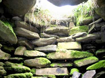 The souterrain is 7.3m long and runs beneath and outside the NW area of the cashel wall. The word souterrain is French in origin, sous (under) and terrain (ground). They can be referred to locally as 'caves' and are denoted in Gaelic with uaimh and óin (Clinton, 2001). These chambers were often designed with ventilation shafts and elaborate obstruction features where the occupants of the cashel could find temporary refuge during a raid (Edwards, 1996). In more stable times they would perhaps be used as places of storage for food. (Barry, 1994)