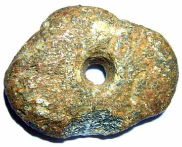 Burial mound: 13m long, 5m wide and 0.5m high. The burial mound is situated 100m west north west of the farmhouse. The Farm mound is situated in the same area, 20 x 35 m, cultural layers about 1 m thick. Finds: 2 hones of slate, shreds from soapstone vessels, 2 fragments of baking plates (plates of soapstone), and a small flake of flint. (Museumnumber TS 7096 a-d). Other finds submitted: Fish-weight of soap stone and a hone of slate, found close to the farm house. This could come from the farm-mound. Several more hones have been found at the farm earlier. Ts. 7034 a-b (museum number). |